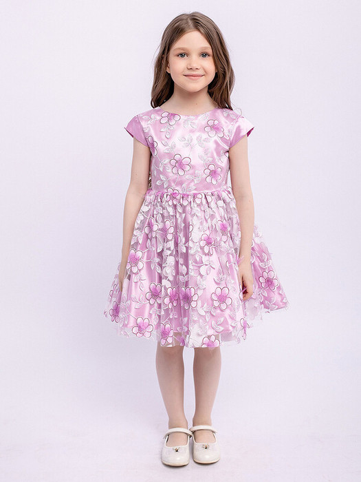 Нарядное платье с пышной юбкой. Застежка на молнию на спинке. Хлопковый подклад, пышный подъюбник. Короткий рукав.Особенности модели:На спинке имеется поясок чтобы дополнительно утянуть талиюСиреневый цветЦветочный рисунокХарактеристики:Размеры (рост): 98-134Ткань верха: Сатин - ПолиэстерСетка - ПолиэстерПодкладка 100% хлопокПроизводитель: batik