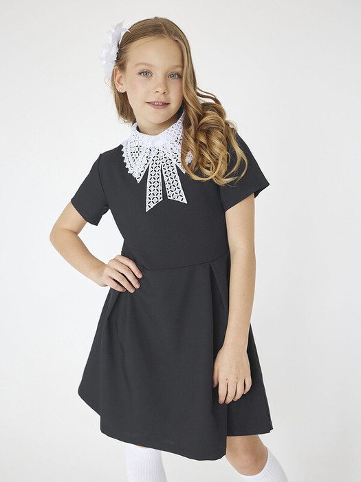 Платье для школы серое со складками на талии. Съемный белый воротник. Застежка на тесьму-молнию, короткие рукава. Стильное удобное платье из вискозы для девочки классического силуэта.Характеристики:Ткань: полиэстер 77%, Вискоза 19%, эластан 4%Производитель: Batik