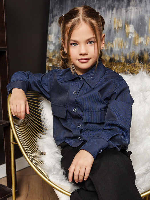 Укороченная рубашка для девочки выполнена из смесовой ткани с рисунком из хлопка и полиэстера. Модель дополнена классическим отложным воротником, длинными рукавами и застежкой на пуговицы. Вместительные накладные карманы с клапанами.Характеристики:Ткань: Хлопок 60%, полиэстер 40%Производитель: batik