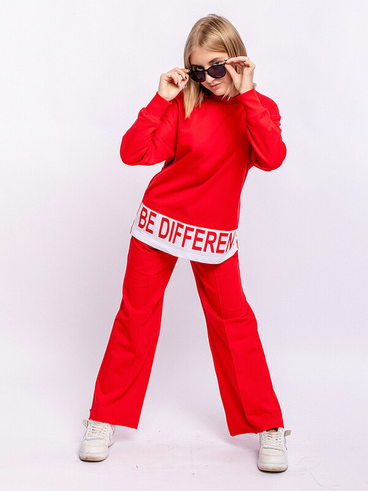 Свитшот с длинным рукавом красный для девочки. В нижней части вставка с надписью.