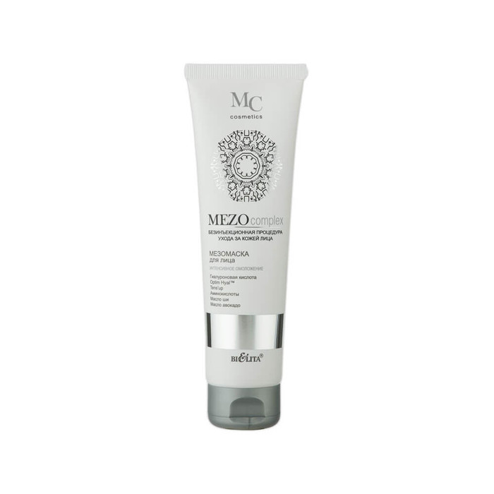 Мезомаска глубоко увлажняет и питает кожу, подтягивает ее, разглаживает морщины, выравнивает тон кожи и улучшает цвет лица, придает ему свежий, отдохнувший вид. Optim Hyal™ стимулирует синтез гиалуроновой кислоты, восстанавливает ее оптимальный баланс, повышает увлажненность кожи, увеличивает ее эластичность, плотность и упругость, уменьшает несовершенства и разглаживает морщины. Tens’up подтягивает кожу и оказывает длительное антивозрастное действие за счет улучшения синтеза коллагена. Гиалуроновая кислота направленного действия проникает в глубокие слои эпидермиса, выталкивает морщины изнутри и оказывает действие подобное салонной процедуре мезотерапии. Коктейль из аминокислот (таурин, глицин, аргинин) наполняет клетки кожи энергией и жизненной силой, способствует клеточной регенерации. Масло ши увлажняет и смягчает кожу, стимулирует синтез собственного коллагена, улучшает цвет лица. Масло авокадо прекрасно питает кожу и активно ее увлажняет, ускоряет процесс регенерации клеток. ВНИМАНИЕ: активная формула — возможно пощипывание