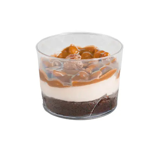 Пирожное сервировано в практичном стакане, сохраняющем эстетику подачи, и полностью готово к употреблению после разморозки в холодильнике (+2…+4°C) в течение 4–6 часов. Удобная фасовка (8 шт/коробка) оптимизирует хранение при -18°C