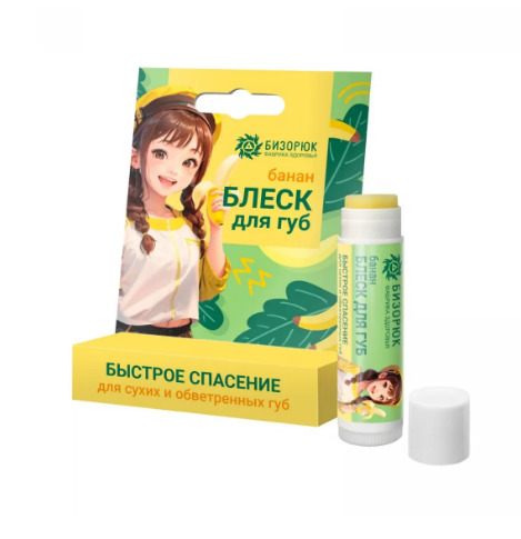 Блеск для губ имеет приятный нежно-оранжевый оттенок и аромат банана. Блеск для губ с бананом – быстрое спасение для сухих и обветренных губ в холодное время года. Содержит натуральные масла и растительные экстракты, подходит для детей и подростков. Содержит концентрированный банановый сок – природный антиоксидант с целебными свойствами. Сок банана быстро заживляет мелкие повреждения, восстанавливает структуру кожи, что делает блеск незаменимым средством в сезон простуд. Масла какао и авокадо с витамином Е питают и смягчают кожу. Масло семян чиа, сафлоровое и облепиховое с экстрактом ванили улучшают обменные процессы кожи, увлажняют и обновляют на клеточном уровне. Пчелиный воск повышает защитные свойства кожи, а натуральный перламутр в составе средства придаёт естественный мерцающий блеск.