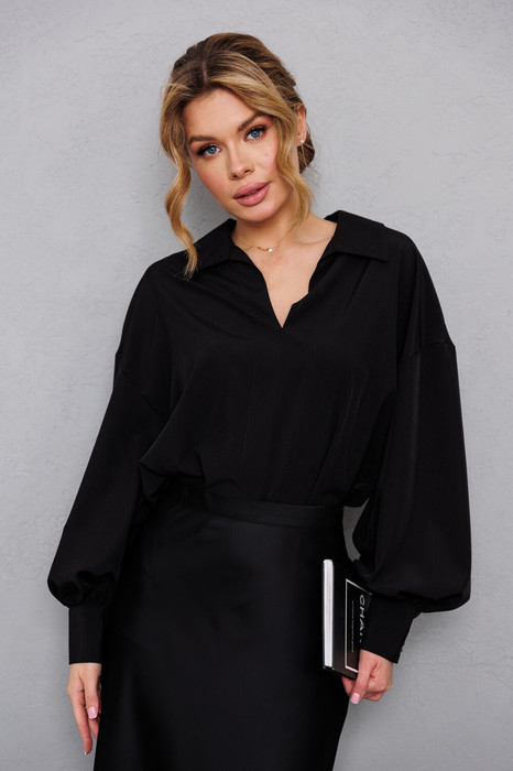 Шикарная объёмная блузка оверсайз, с красивыми широкими рукавами, модный большой воротник переходящий в глубокий узкий вырез на груди.