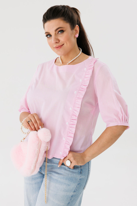 Эта блуза идеально подходит для повседневного ношения, создавая нежный и женственный образ. Будь то прогулка по городу или встреча с друзьями, эта нежная блуза станет вашим любимым выбором, добавляя нотку очарования и свежести в любой наряд.