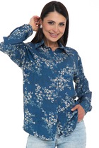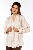 Блузка прямого силуэта. Горловина округлой формы, по спинке с застежкой на навесную петлю и пуговицу. По переду нагрудные вытачки. Рукав длинный втачной широкий, по низу на манжете со сборкой и застежкой на петли и пуговицы.