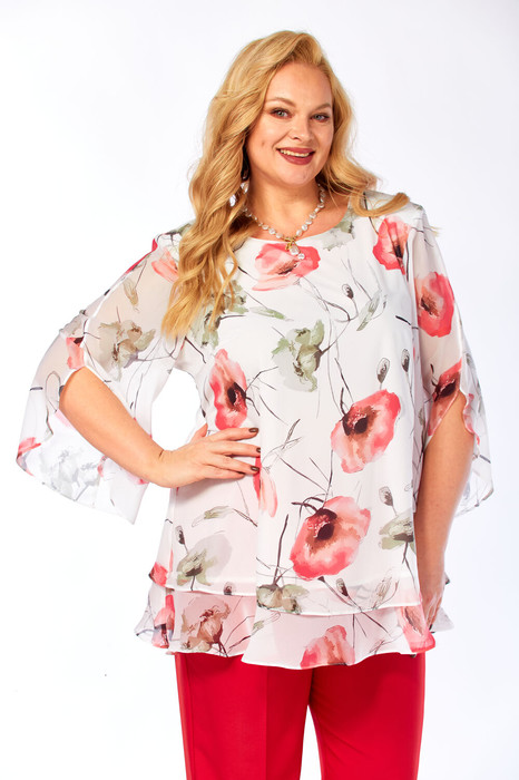 Блуза Элль стиль 2213/13а белый принт маки