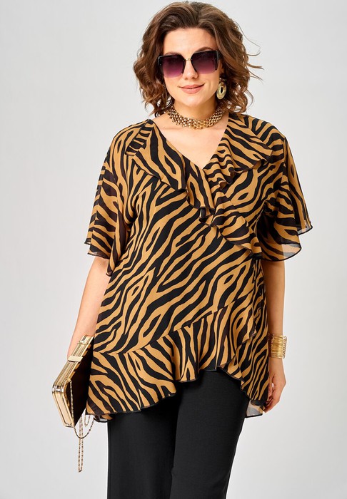 Блуза EVA GRANT 198-1 принт зебра кофе