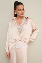 Представляем вам изысканную блузку от LAIKONY, которая станет настоящим акцентом вашего гардероба! Эта модель свободного силуэта идеально облегает фигуру и заканчивается на линии бедер, придавая вам непринужденный и стильный вид. Вырез горловиныокруглый со сборкой и завязками подчеркивает вашу шею и декольте, создавая утонченный образ. В боковых швах элегантные разрезы. Спинка блузки оформлена кокеткой, а в центре нижней части располагается аккуратная складка, придающая модели объем и динамичность.