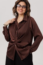 Блузон свободного силуэта со спущенной линией проймы и укороченным втачным рукавом длиной 26 см. Горловина округлая, оформлена планкой 2,8 см. Длина блузона по спинке 65-68 см (в зависимости от размерного ряда). Низ изделия и рукавов обработаны открытым срезом. Верхние детали изделия отлетные и имитируют силуэт майки без рукавов и состоят из мерцающего трикотажного полотна с пайетками.