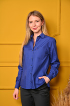 Блузка женская прямого кроя с втачным рукавом. Вырез горловины v- образной формы, оформлен двумя рядами воланов переходящими в шов по переду. По линии груди вытачки. Спинка цельная. Рукав длинный расширенный к низу собран на резинку.