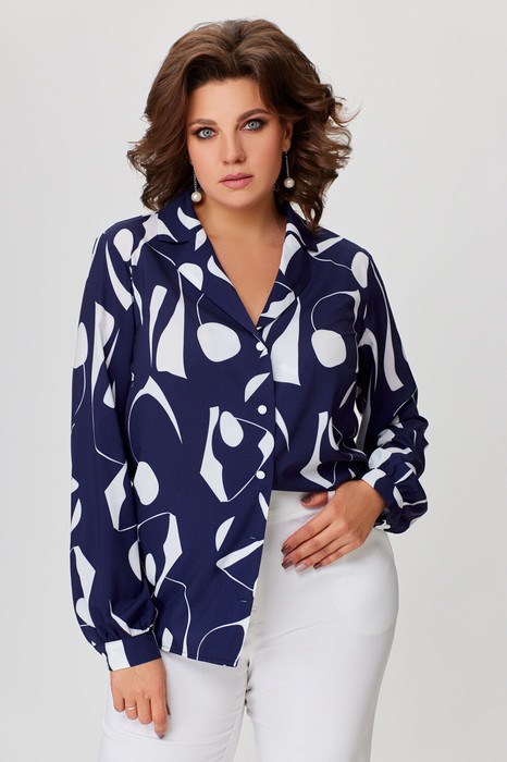 Блуза Swallow 772 синий+молочный принт