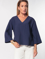 Vilatte Свободная блузка из плотного лиоцелла D29.240 дымчатый синий