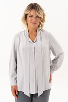 Этот блузон — воплощение современной элегантности и абсолютного комфорта, созданное для тех, кто ценит тактильную роскошь. Выполненный из стопроцентного тенсела, он обладает уникальной текстурой: шелковистой, едва прохладной на ощупь и благородно матовой. Ткань струится, мягко очерчивая силуэт и создавая живую игру света при каждом движении. Легкость материала делает этот блузон идеальным спутником для летних вечеров, когда хочется окутать плечи чем-то невесомым. Блузон в этом ансамбле — не просто куртка, это заявление, его облегчённая ткань делает его невесомым, почти эфемерным. Блузон свободного силуэта со вставкой эластичной тесьмы-резинки для мягкого прилегания. Блузон с центральной застёжкой на петли-пуговицы по планке, воротником рубашечного типа. Рукав в блузоне цельнокроеный с отложной манжетой и декоративной патой фиксирующейся отделочной пуговицей. По переду горизонтальные подрезы, декоративные клапана с отделкой в виде пуговицы. По переду блузона прорезные карманы в горизонтальных рельефах. Спинка в блузоне с отрезной кокеткой и вертикальными рельефами. Варианты стилизации: для создания образа в стиле «тихая роскошь» сочетайте блузон с широкими брюками-палаццо из такого же материала или тонкого льна в монохромной гамме. Добавьте шелковый топ в бельевом стиле и лаконичные кожаные сандалии на плоском ходу. Этот ансамбль идеально подойдет для прогулки по набережной или бранча на открытой террасе. В повседневном городском ритме блузон станет отличным дополнением к джинсам прямого кроя с высокой посадкой и базовой белой футболке. Чтобы добавить образу динамики, выберите кеды из светлой парусины и небольшую сумку-кроссбоди. Контраст между грубым денимом и нежным тенселом подчеркнет современность вашего вкуса. Длина блузона 61 см (р 52-56), 62 см (р 58-62). Длина рукава 52 см (р 52-56), 53 см (р 58-62).