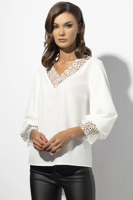 Рукав втачной три четверти, на подкладке, внизу присборенный, с притачной манжетой из кружева.