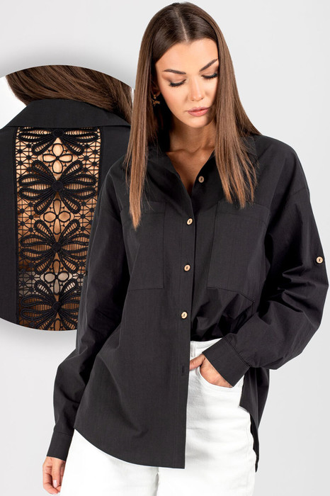 Женская блузка (рубашка) прямого силуэта со спущенным плечом.
