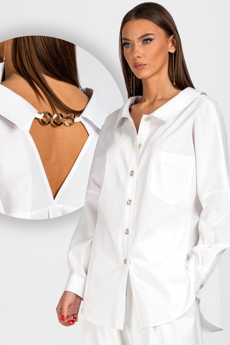 Блузка-рубашка прямого силуэта со спущенным плечом.