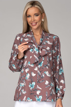 Отделочным элементом блузки является 5 цветков, настроченные пуговицами.