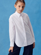 Трикотажный блуза из линейки VAY KIDS школа. Отложной воротничок, застежка на пуговицы с ажурной отделкой.