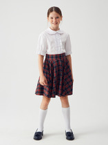 Трикотажная блуза из линейки VAY KIDS школа. Отложной воротничок с застежкой на пуговицы и ажурной отделкой.