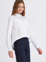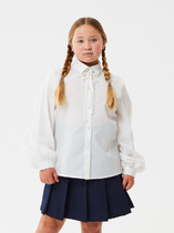 Трикотажная блуза из линейки VAY KIDS школа. Отложной воротничок с застежкой на пуговицы и ажурной отделкой.
