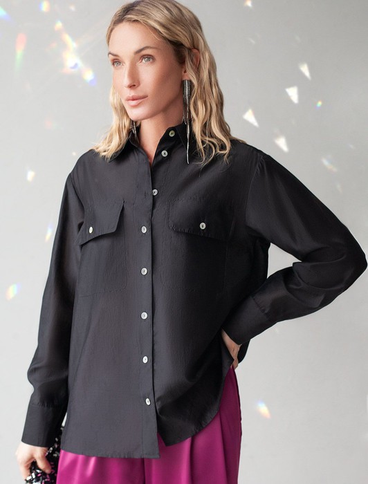 Состав: 60%Лиоцелл (Вис) 25%Вис 15%ПЭ Параметры модели на первом фото: Рост 172, бюст 88, талия 64, бедра 88Блузка выполнена из полупрозрачного лиоцелла с эффектом шелка. Праздничная и переливающаяся фактура ткани изыскано играет в вечернем освещении. Легкая и почти невесомая модель, приятно ощущается на теле. Застежка на пуговицы из натурального перламутра, подчеркивает роскошь.