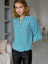 Состав: 55%Вис 45%Лиоцелл (Вис)Свободная блузка выполнена из премиальной вискозы и лиоцелла. Приятная на ощупь ткань охлаждает кожу в жаркую погоду, а крой не ограничивает свободу движений. Свободный силуэт и герметичный принт подходит всем для любой фигуры. На спинке фирменный логотип бренда.
