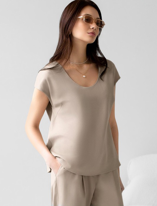 Состав: 76%Лиоцелл (Вис) 24%ПЭЭлегантная блузка светло-бежевого цвета скроенная по косой выполнена из плотного лиоцелла. Лиоцелл это более дорогой и экологичный вариант вискозы, очень прочный и шелковистый. Эта повседневная блузка с трендовым U-вырезом создана для легкого и утонченного стиля. Мягкие линии кроя создают невероятно эффектный образ, который подчеркивает естественную красоту, не стесняя движений, а свободный фасон дарит ощущение абсолютного комфорта и уверенности. Блузка красиво драпируется при движении, создавая летящий, воздушный эффект. Эта легкая блуза с коротким рукавом идеальный выбор для комфорта и стиля в теплое время года, она будет идеальна для любого повода.