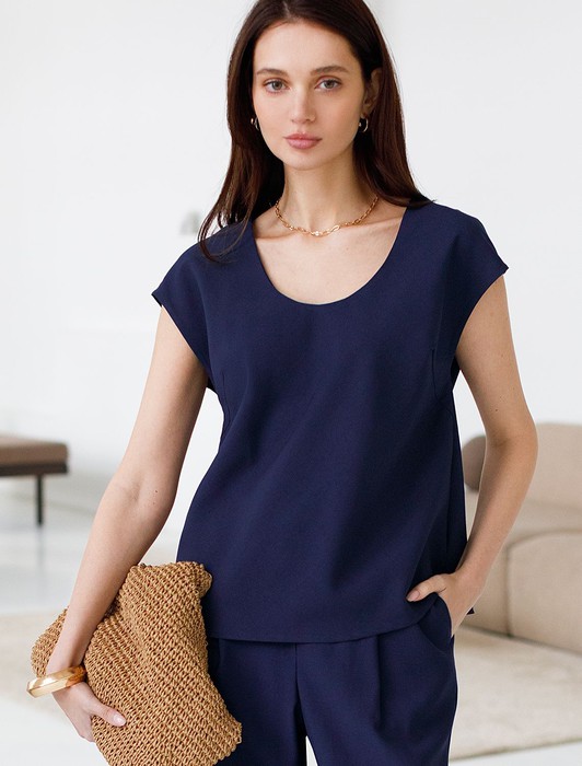 Состав: 76%Лиоцелл (Вис) 24%ПЭ Плотность: 180 Г/м2Элегантная блузка темно-синего цвета скроенная по косой выполнена из плотного лиоцелла. Лиоцелл это более дорогой и экологичный вариант вискозы, очень прочный и шелковистый. Эта повседневная блузка с трендовым U-вырезом создана для легкого и утонченного стиля. Мягкие линии кроя создают невероятно эффектный образ, который подчеркивает естественную красоту, не стесняя движений, а свободный фасон дарит ощущение абсолютного комфорта и уверенности. Блузка красиво драпируется при движении, создавая летящий, воздушный эффект. Эта легкая блуза с коротким рукавом идеальный выбор для комфорта и стиля в теплое время года, она будет идеальна для любого повода.
