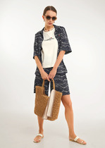 Блуза женская из гладкокрашеного тканого полотна, прямого силуэта, с горловиной овальной формы и цельнокроеными рукавами длиной до локтя. Горловина окантована основным материалом.При выборе изделия в белом цвете идеальным решением будет выбор белья нейтральных