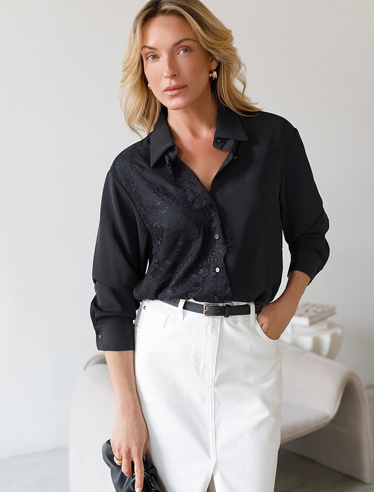 Состав: 97%ПЭ 3%ПУ Плотность: 250 Г/м2Блузка черного цвета из креп шифона сочетает в себе современные тенденции и классику, позволяя выглядеть элегантно как на торжественном событии, так и на деловой встрече. Материал обеспечивает легкость и комфорт, а изысканное кружево добавляет нотки женственности и утонченности. Нарядная отделка подчеркивает индивидуальность обладательницы, делая образ запоминающимся. Эта рубашка - универсальное решение для разных случаев: она идеально подходит для особых вечеров, торжеств или создания повседневного лука с акцентом на элегантность. Благодаря удачному крою изделие садится по фигуре, не сковывает движения и дарит ощущение свободы в течение всего дня. Деликатное кружево гармонично сочетается с фактурой ткани, формируя стильный внешний вид без лишней вычурности, такой вариант подойдет для создания романтического стиля или дополнения делового гардероба.