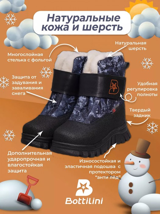 зимние ботинки для детей из натуральной шерсти отлично держат тепло до -25 градусов. верх ботинок изготовлен полностью из натуральной кожи. двойная шерстяная стелька с алюминиевой фольгой отражает холод снизу. под стелькой выложена шерстяная байка, чтобы стопа всегда оставалась в тепле. отлично выводят лишнюю влагу благодаря натуральным материалам. обладают большой износостойкостью благодаря антивандальной защите на мысе и заднике. цепкие липучки отлично держат ногу и легко и широко раскрывают ботинки. упругая подошва не скользит и обеспечивает распределение нагрузки на опорно-двигательный аппарат. ботинки сделаны из натуральных материалов и очень прочные.