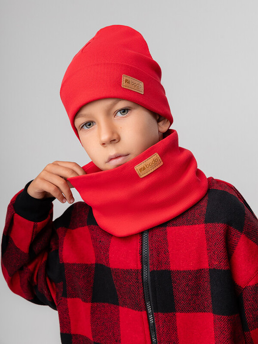 Совместные покупки Нижневартовск Детские аксессуары Шапки — Bodo Комплект (шапка, снуд) с кожзам нашивкой 13-201MU красный