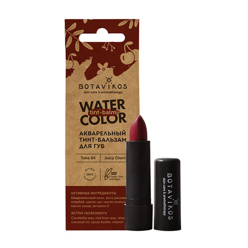 Акварельный тинт-бальзам для губ Botavikos на основе восков и масел позаботится о нежной уязвимой коже в течение всего дня и придаст губам легкий полупрозрачный вишневый оттенок, сочность и очаровательный глянец.