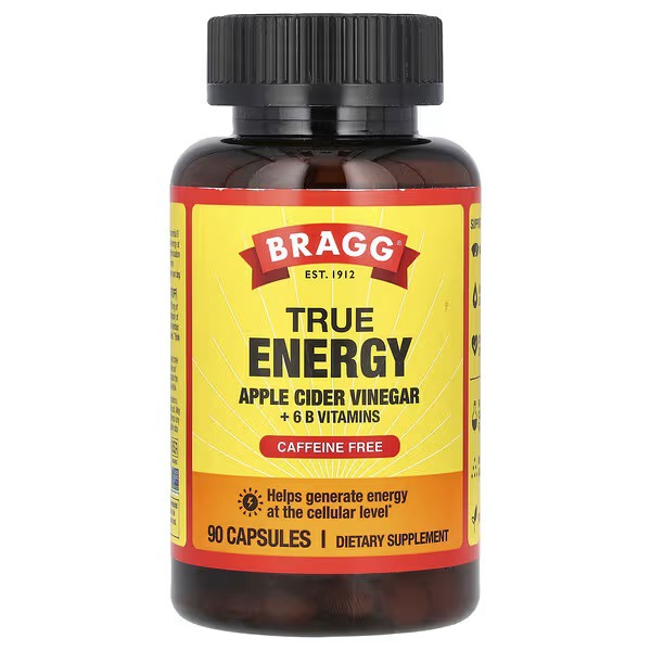 Bragg, True Energy, яблочный уксус, 6 витаминов группы B, без кофеина, 90 капсул