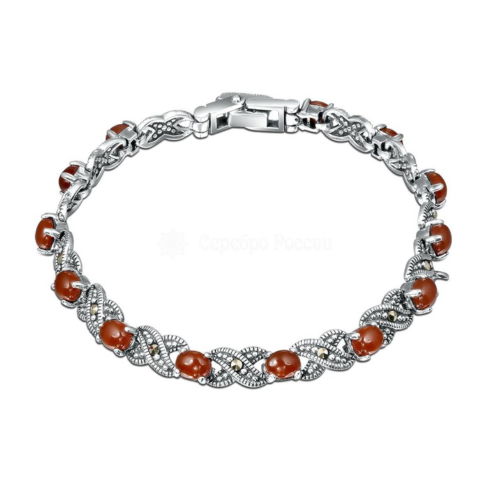 Совместные покупки Нижневартовск Ювелирные украшения и бижутерия Браслеты — Браслет из чернёного серебра с агатом и марказитами - 17 см