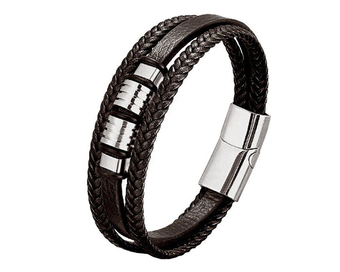 Браслет, арт.650839 , р. 21, 0 гр., кожа , сталь