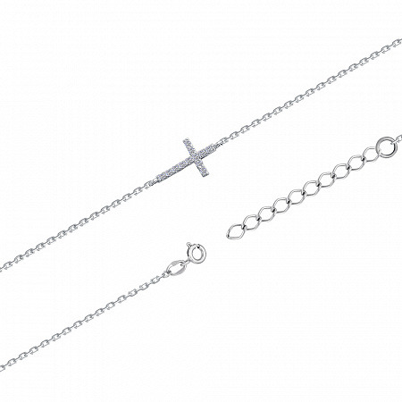 Браслет с фианитом родированный серебро 925*