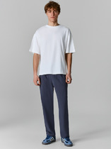 Брюки мужские спортивные на манжетах. Модель имеет два кармана спереди, накладной карман сзади с камуфлированной листочкой. Камуфлированная вставка снизу брюк по боковому шву. На левом кармане печать.