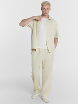 Брюки прямые свободного силуэта. Пояс на резинке и кулисе с декоративным шнуром. В боковых швах функциональные карманы.
