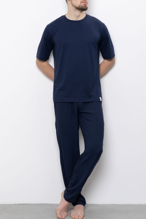 Брюки прямого силуэта с карманами из вискозы. Пояс на резинке с функциональной кулисой. Модель удачно миксуется с футболками данной коллекции, а так же с любой футболкой basic almando melado.