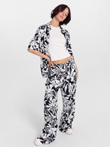 Трендовые натуральные широкие брюки на резинке в спортивном стиле. По бокм имеются карманы и атласные лампасы.