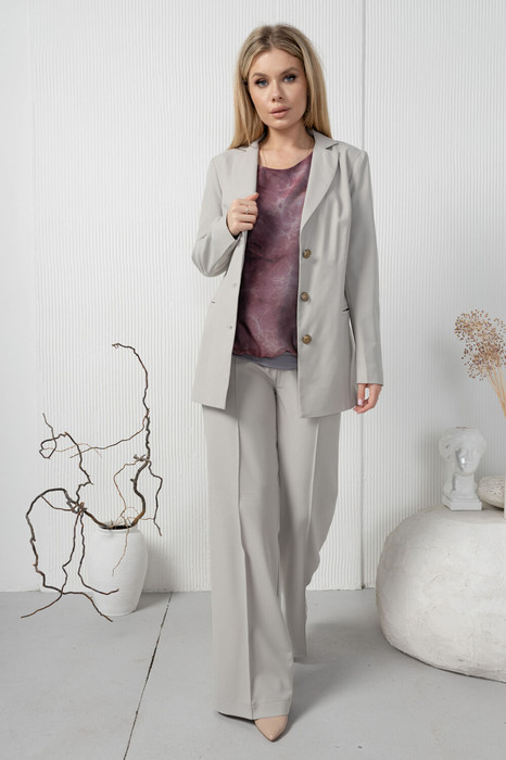 Облегающие широкие брюки с высокой талией. Изделие имеет защипы-канты по передней и задней половинке. Застежка на потайную молнию в боковом шве.