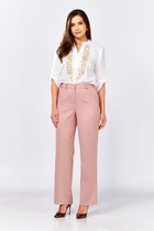 Идеальная посадка достигнута за счет эластичной резинки по спинке, которая мягко облегает фигуру, подчеркивая линию талии и обеспечивая комфорт в течение всего дня. Широкие штанины визуально удлиняют ноги, добавляя образу женственности и грации.
