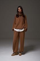 Брюки прилегающего кроя, выполнены из костюмной ткани черног цвета. Характеристики: прилегающий крой, пояс стабильный застежка на молнии с пуговицей, на задней части изделия имитация карманов, передней и задней части брюк застроченные стрелки, в стрелках передней части разрезы. по низу изделия эластичные штрипки. Длина по боковому шву 91,5см.