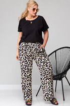 Брюки прямого кроя выполнены из костюмной ткани черного цвета. Характеристики: прямой крой, широкая резинка 7 см из основной ткани, боковые карманы, на передних и задних частях брюк заутюжены стрелки. Длина брюк 109 см.
