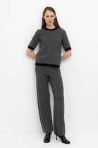 Джоггеры из мягкой и пластичной экозамши, прямого силуэта, с боковыми карманами спереди, и фигурной кокеткой сзади. Пояс с резинкой. В боковых швах контрастные лампасы.