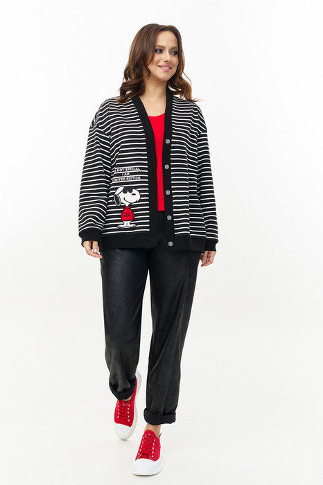 Брюки из плотного эластичного трикотажа с покрытием "нубук", прямого силуэта, зауженные к низу. Пояс с трикотажной вставкой с резинкой. Карманы брюк в боковых вставках. Изделие декорированонашивкой с авторским принтом.