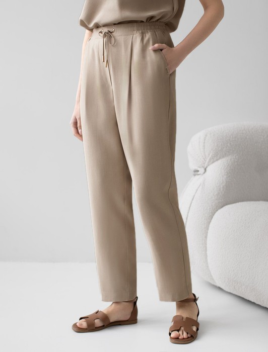 Брюки бананы с поясом на резинке из плотного лиоцелла