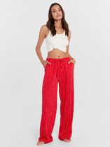 Стоит учитывать слабую растяжимость ткани и зауженность модели в бедрах.